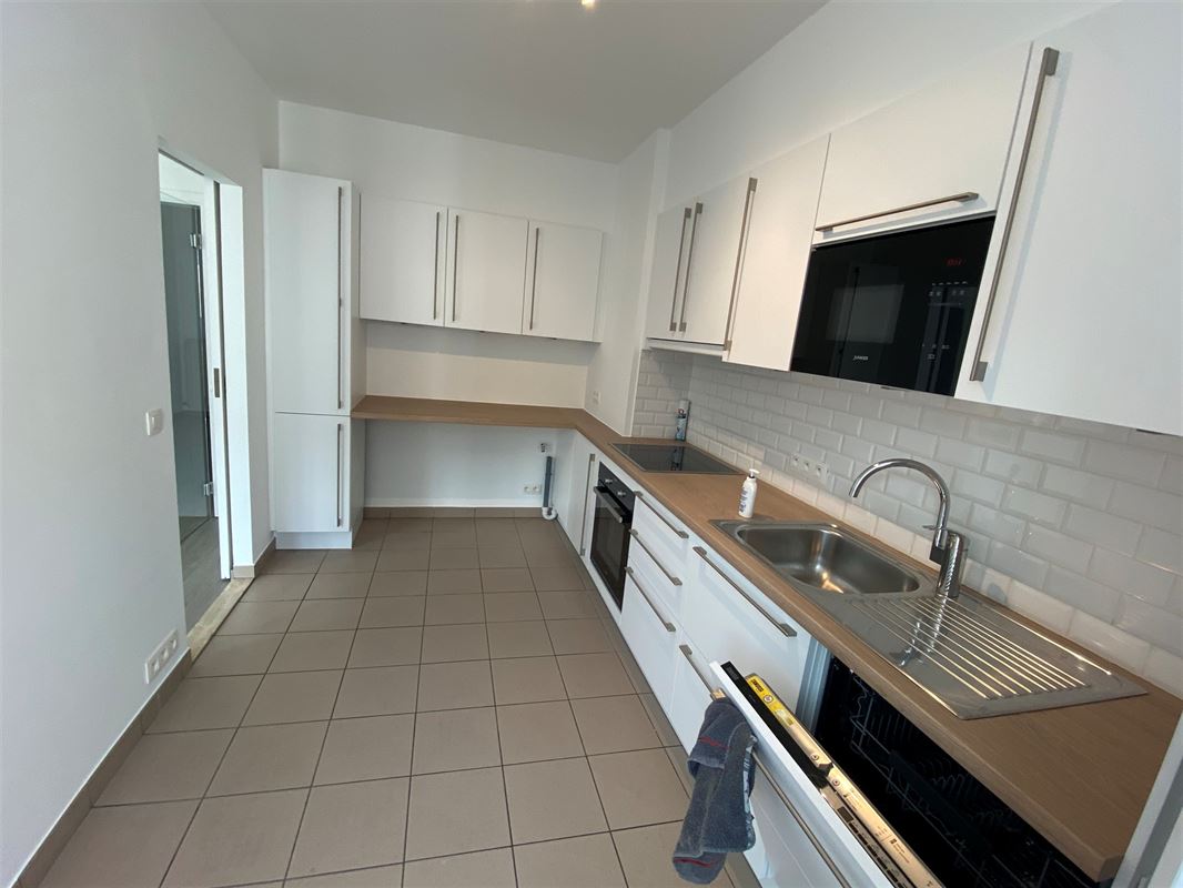 L'appartement de 125m2 se compose d'un grand hall d'entrée, de 3 chambres (+-13m2 chacune) en façade arrière, d'une salle de bains, d'un wc visiteurs, d'un espace buanderie/chaufferie, et en façade avant d'un grand séjour et d'une cuisine super équipée à l'état neuf (frigo et lave-vaisselle, raccordement machine à laver). Grande cave.