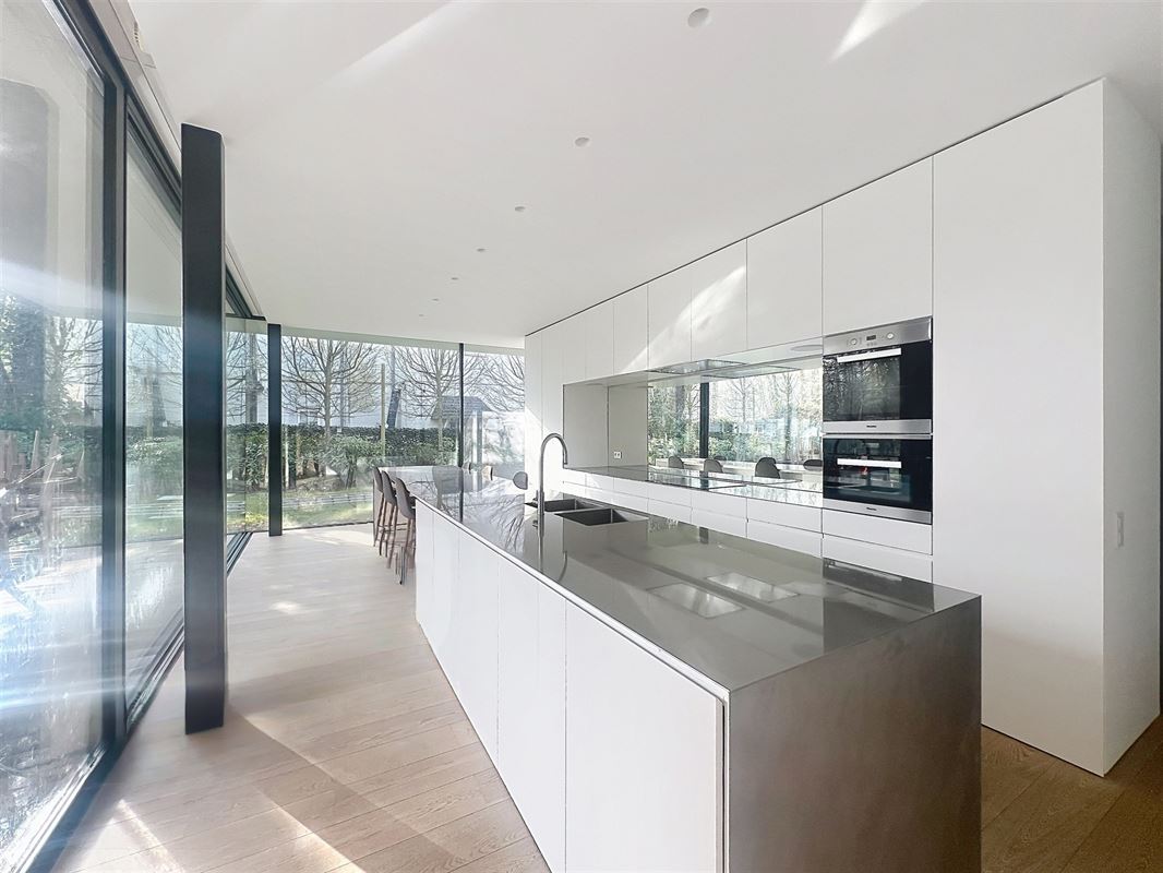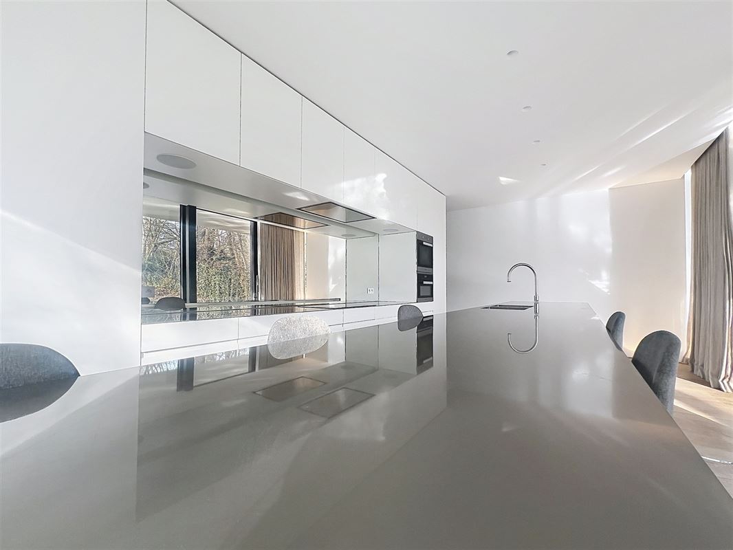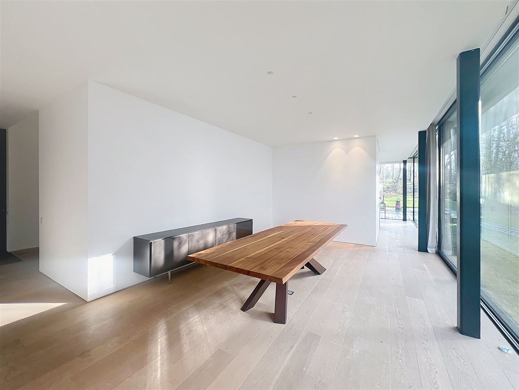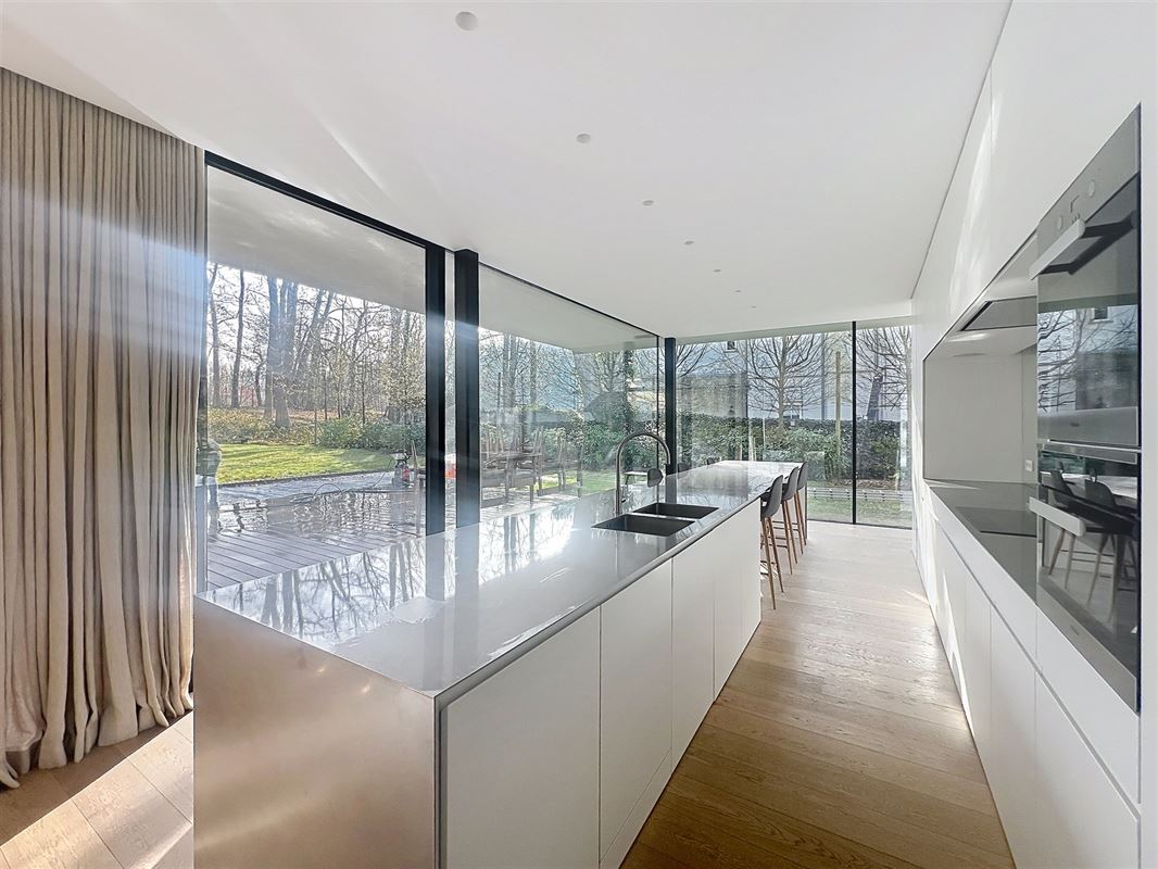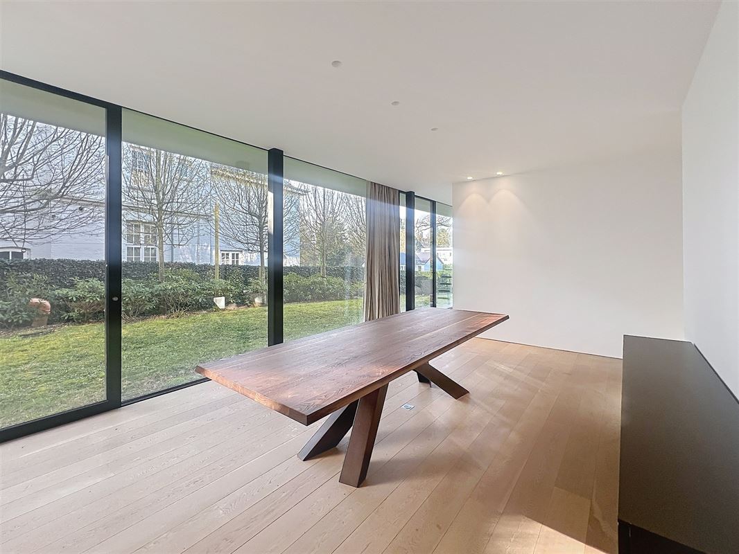 Située dans le quartier recherché de la Grande Espinette, à 5 minutes du Fort Jaco et de Wateloo et à côté de la Forêt de Soignes, superbe maison contemporaine semi-meublée avec piscine, conçue par Bruno Erpicum.